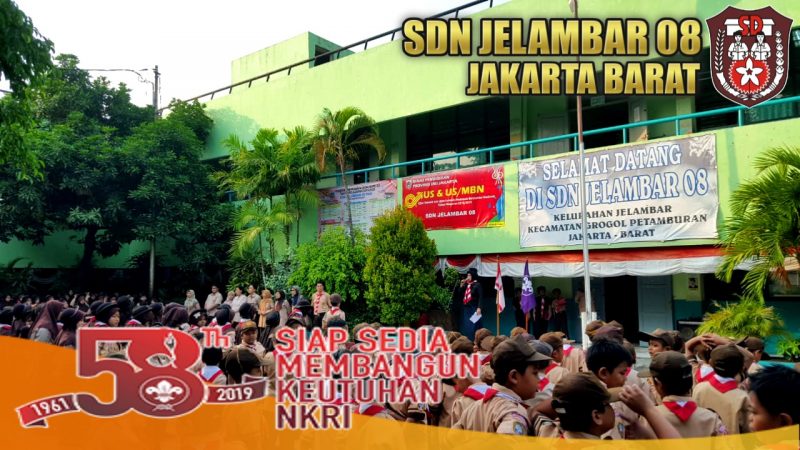 Suasana upacara peringatan Hari Pramuka ke-58 di halaman SDN Jelambar 08